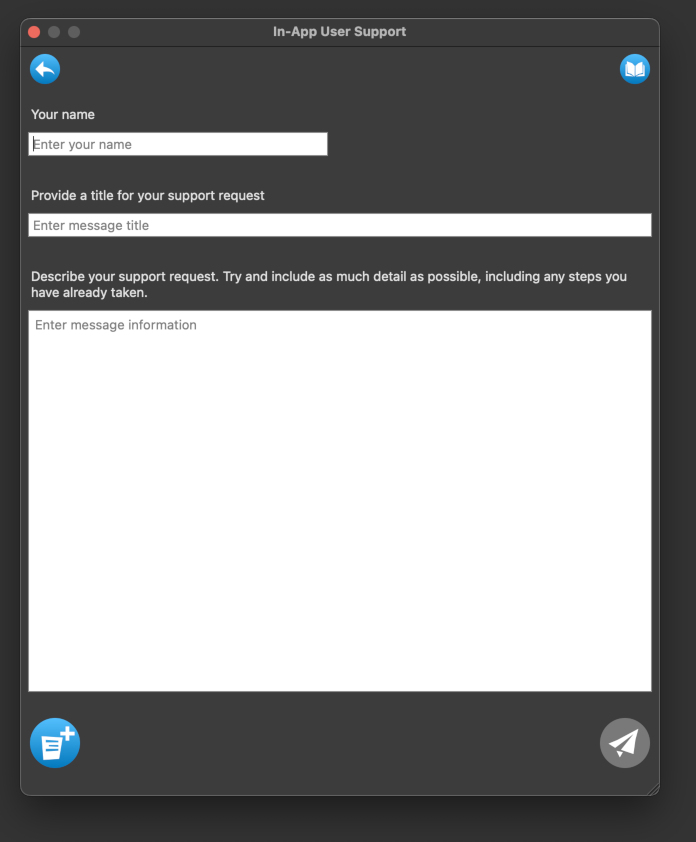 The following screen will ask you to enter your some information, including your name, a title for your support request, and detail about the question or problem you are having: