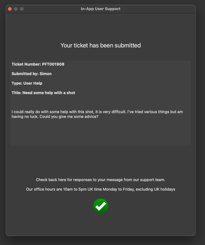 to take you back to the ticket list screen. Its status will remain submitted until a member of our support tearm accepts it.